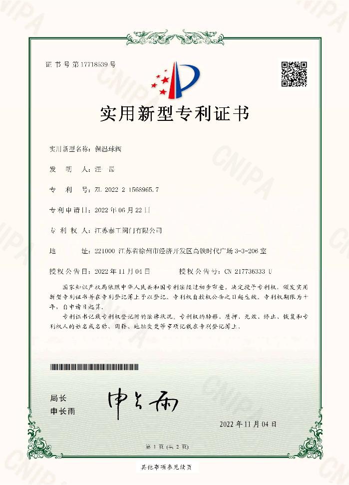 以质量求生存。江苏泰工阀门有限公司不断建立完善质量管理体系,构建标准化生产车间,坚持严格控制从设计到生产作业各个环节的质量状况,细致缜密,严格把控,凭借过硬的产品质量和良好的服务机制,加之雄厚的技术、精良的设备、先进的技术、精益求精的态度,缔造了稳定可靠的江苏泰工阀门产品质量和卓越的江苏泰工阀门品牌,不断发明创造防真空衬氟防腐球阀、保温球阀、耐磨夹管阀等多种实用新型发明专利,在企业产品市场中反映优异,多次获得“全国电力器材优秀供应商”、“全国化工行业十佳诚信企业”、“AAA级诚信经营示范单位”、“AAA级诚信供应商”、“AAA级重合同守信用企业”、“AAA级质量服务诚信单位”等一系列荣誉称号!